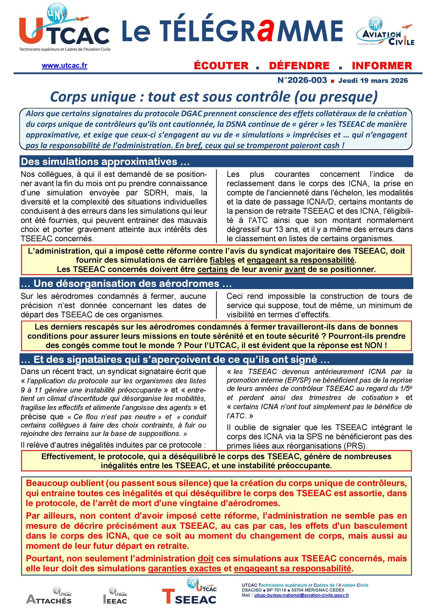 Confrontée à la « navigation à vue » de l’administration et à une pénurie grandissante de recrutements, l’UTCAC a dû se battre pour chaque poste lors de cette réunion d’ajustement des effectifs TSEEAC.